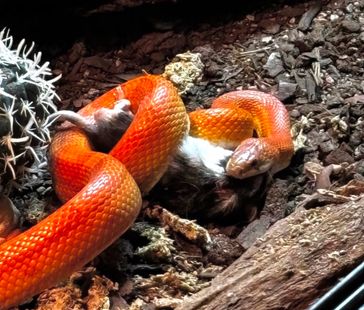 Terrariet ska helst vara lika långt som ormen och halva ormens längd i djup och höjd. Men eftersom att majsormen tycker om att klättra så ha gärna lite höjd på terrariet också (vissa klättrar mer än andra). Desto större desto bättre. Om man tittar på marklevande ormar i L80 (jordbruksverket) så ser man minimum måtten. Men observera att det är minium! Mina mått är Längd: 160cm* Djup: 60cm* Höjd 60cm och det tycker jag passar bra till mina vuxna ormar.