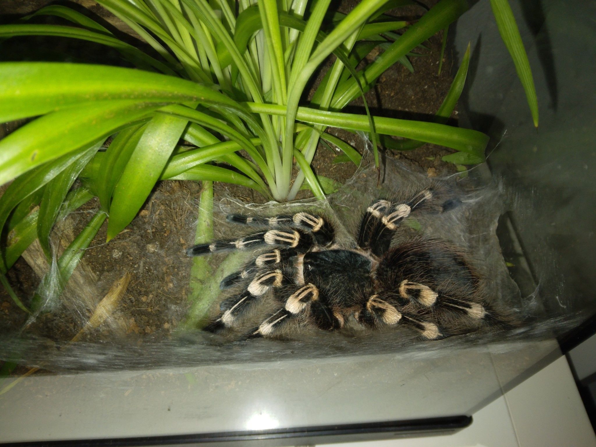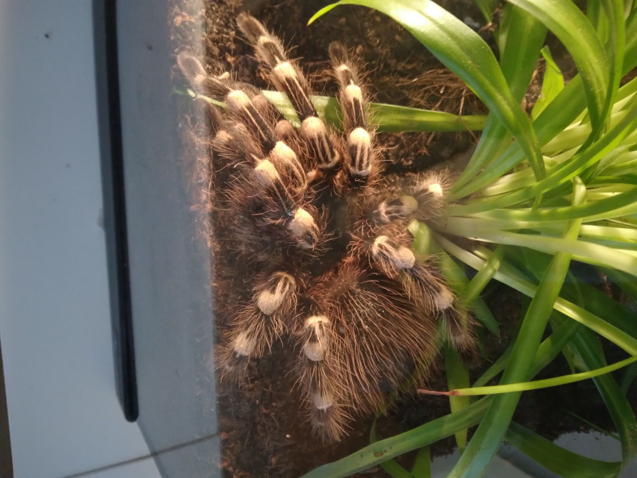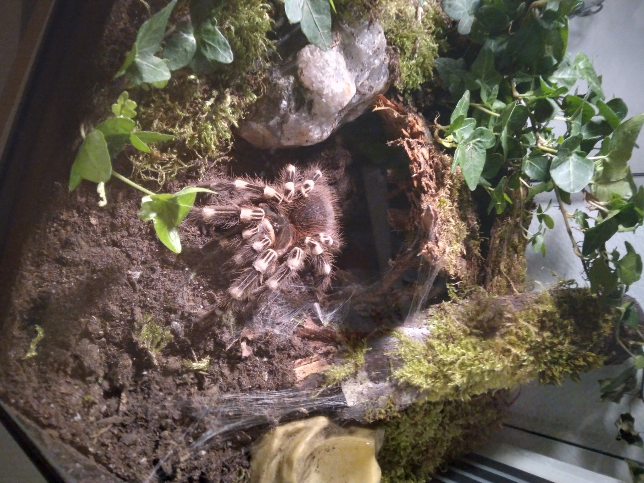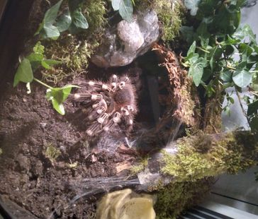 Det är under denna period som det kan vara bra att hålla lite högre luftfuktighet i terrariet då det förenklar processen för spindeln.