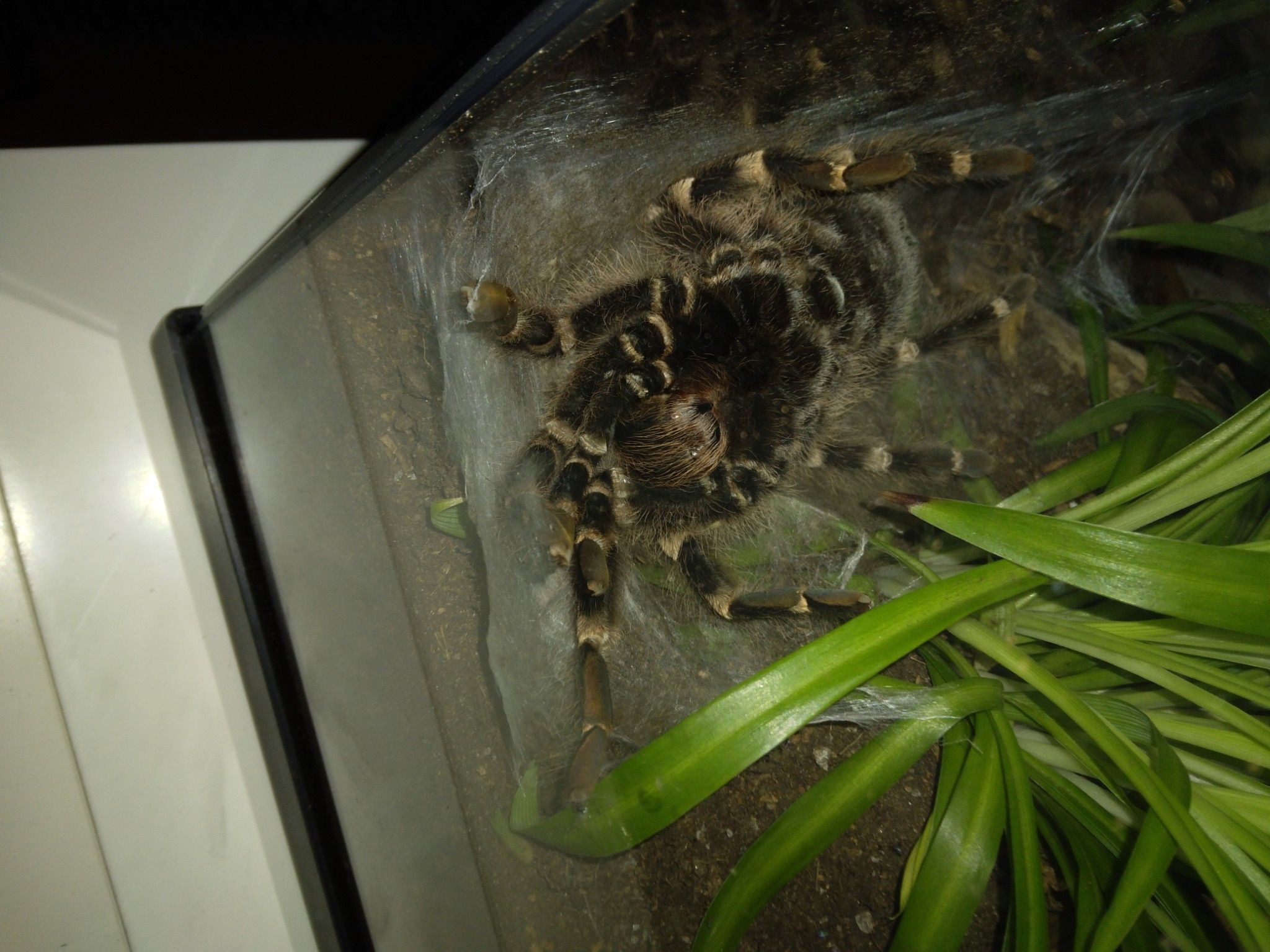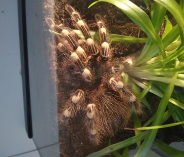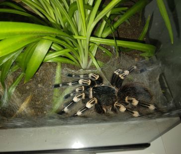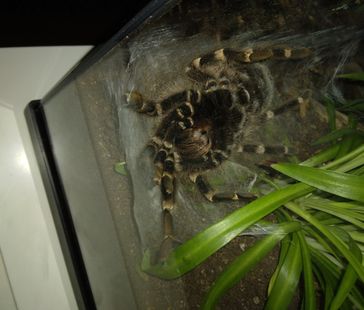 Åt en vuxen spindel ska man ha ett terrarium som är minst 30b*30d*30h. Gärna större om man kan, då detta är en spindelart som kan bli ganska stor med upp till 22 cm i benspann. Som bottensubstrat fungerar det bra att köra en blandning av kokosmull och vitmossa (t.ex. Exo Terra Forest Moss). Det bör vara ganska djupt bottensubstrat, cirka 10 cm som är lite lätt fuktat.