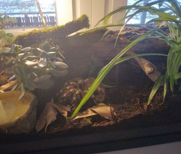 Levande växter är även det något man kan ha i terrariet för att hjälpa till att hålla en bra luftfuktighet. Man ska dock var medveten om att denna art är duktig på att möblera om i sitt terrarium, så det är inte säkert att växterna får stå ifred.