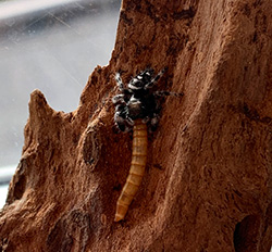 Ungarna matas sedan med fruktflugor som är i spindelns storlek eller mindre.