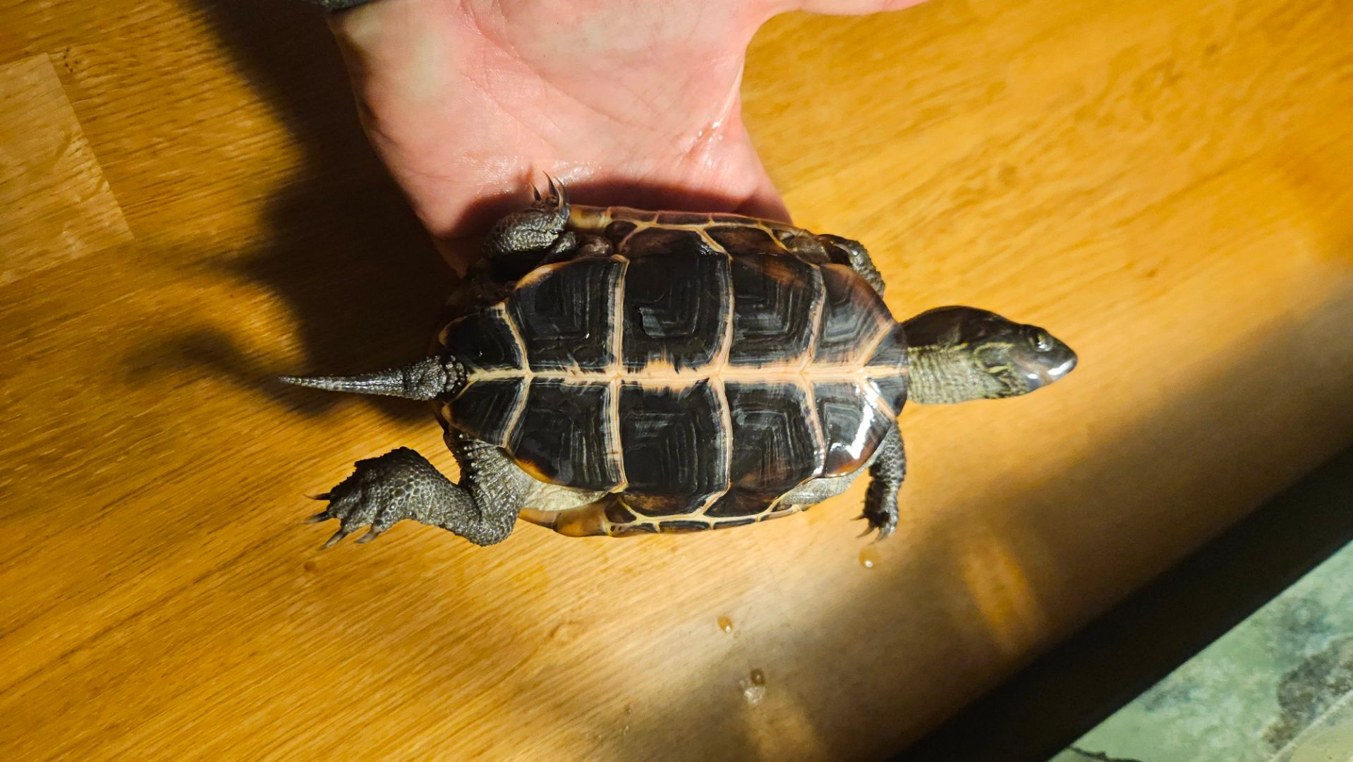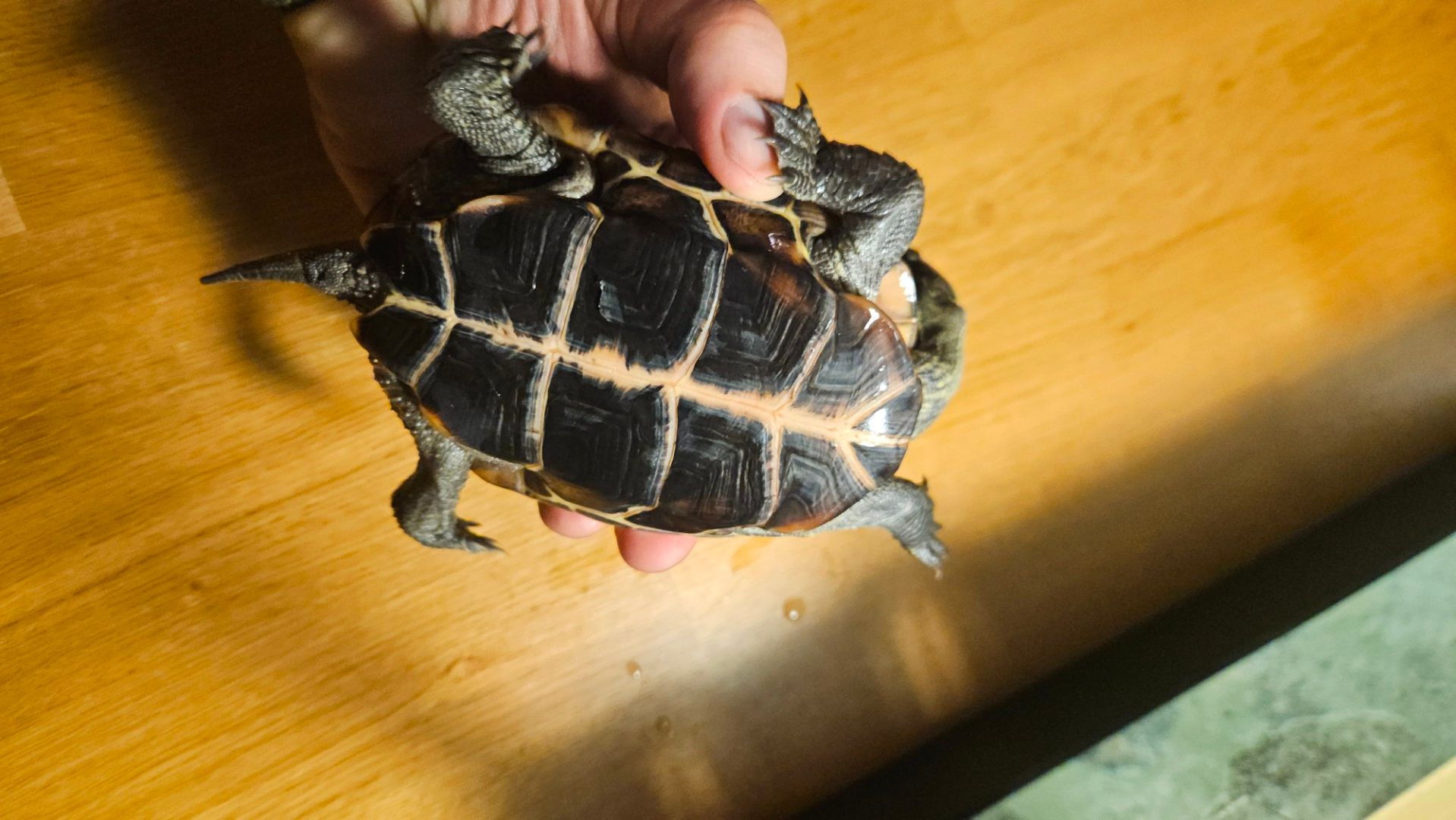 Dotterns Reeves kärrsköldpadda har nu tagit sin sista tugga av hennes manliga rumskamrat och får nu söka sig om efter ett nytt boende. Detta då dottern gillar den mindre och söta hanen mycket mera än den bitska honan.Vi inhandlade henne 2022 från Herpers Choise här i Uppsala. Hon kläcktes 2021.