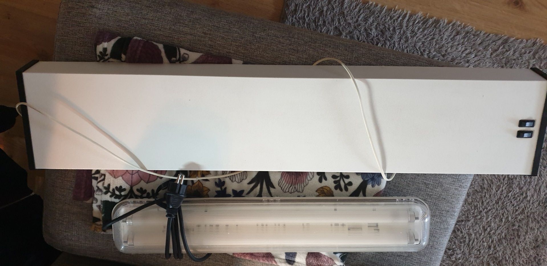 Säljer 2 ljusramper med plats för 2 st t8 rör vardera. Den vita är 100cm lång och den kortare är ca 67cm lång. Medföljer 2 nya ubv (1st 150uvb och 1st 100uvb) rör i den kortare. Den vita säljs utan rör.350:- för den korta